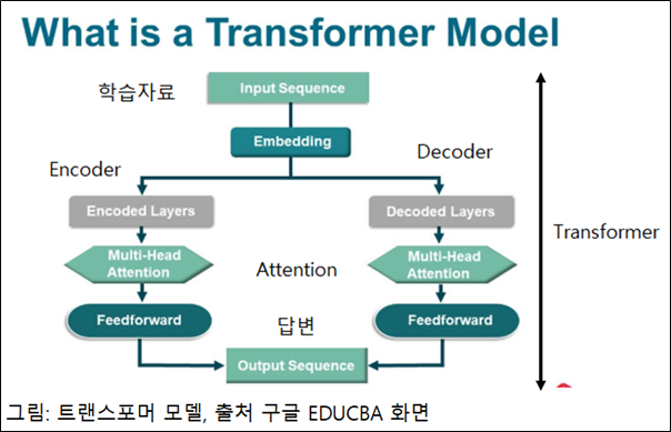 Transformer 학습을 할 경우에 문장 내 단어들의 관계를 확률 수치로 인식하고, 질문에 대한 답을 작성할 경우에 가장 높은 확률에 해당하는 단어들을 끌어 모아서 정답을 만드는 기술입니다.