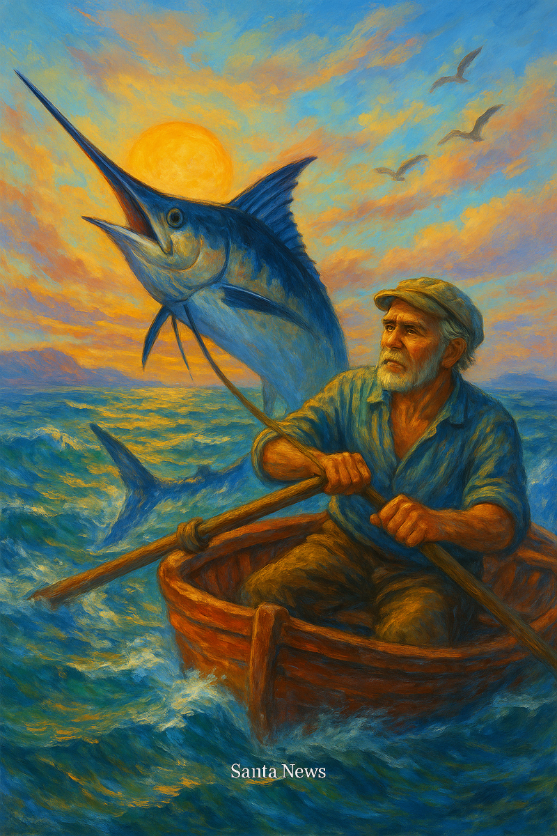 결국 청새치를 잡지만 상어 떼에게 뜯겨 뼈만 남는다. 그러나 패배가 아니라, 인간의 존엄을 지켜낸 승리였다.