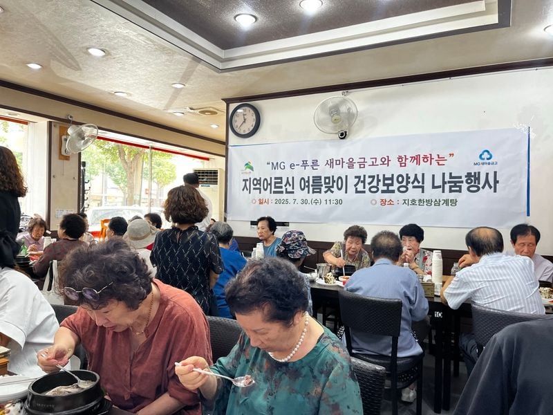추수경 역촌동장은 “폭염으로 지치기 쉬운 요즘, 어르신들이 삼계탕을 드시고 서로 간에 안부도 물으면서 올여름을 건강히 보내셨으면 좋겠다”며 “뜻깊은 자리를 마련해주신 MG e-푸른새마을금고에 감사함을 전한다”고 말했다.