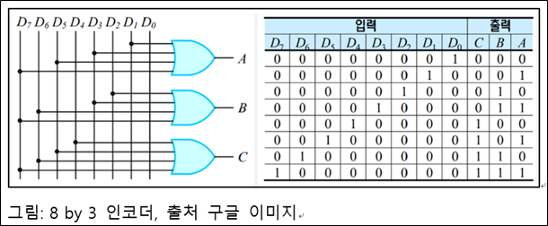 이런 8가지 명령어는 *8 입력 3 출력 인코더*를 사용하여 만듭니다.