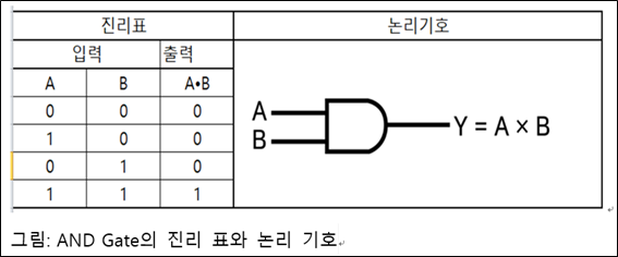불 대수의 이진법 숫자로 곱셈 논리 처리를 하는 것이 AND Gate(논리곱) 입니다.