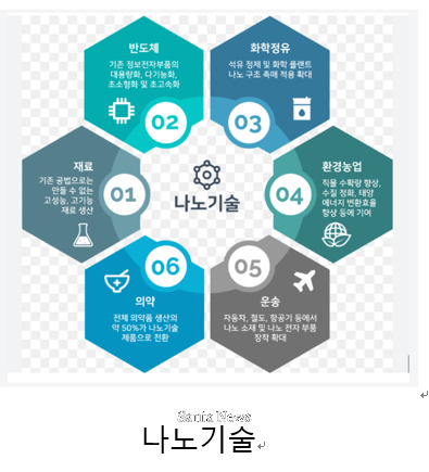 Nano 단위의 물체나 물질을 다루는 기술을 나노기술 이라고 합니다. 대표적인 것이 반도체 기술입니다.