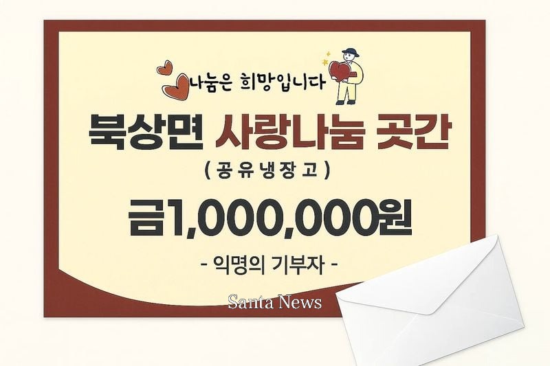 임순행 북상면장은 “해마다 잊지 않고 나눔을 실천해 주시는 기부자님께 진심으로 감사드린다”며 “사랑나눔곳간과 자주만나장 사업을 통해 그 따뜻한 마음이 면민 모두에게 골고루 전해질 수 있도록 최선을 다하겠다”고 전했다.