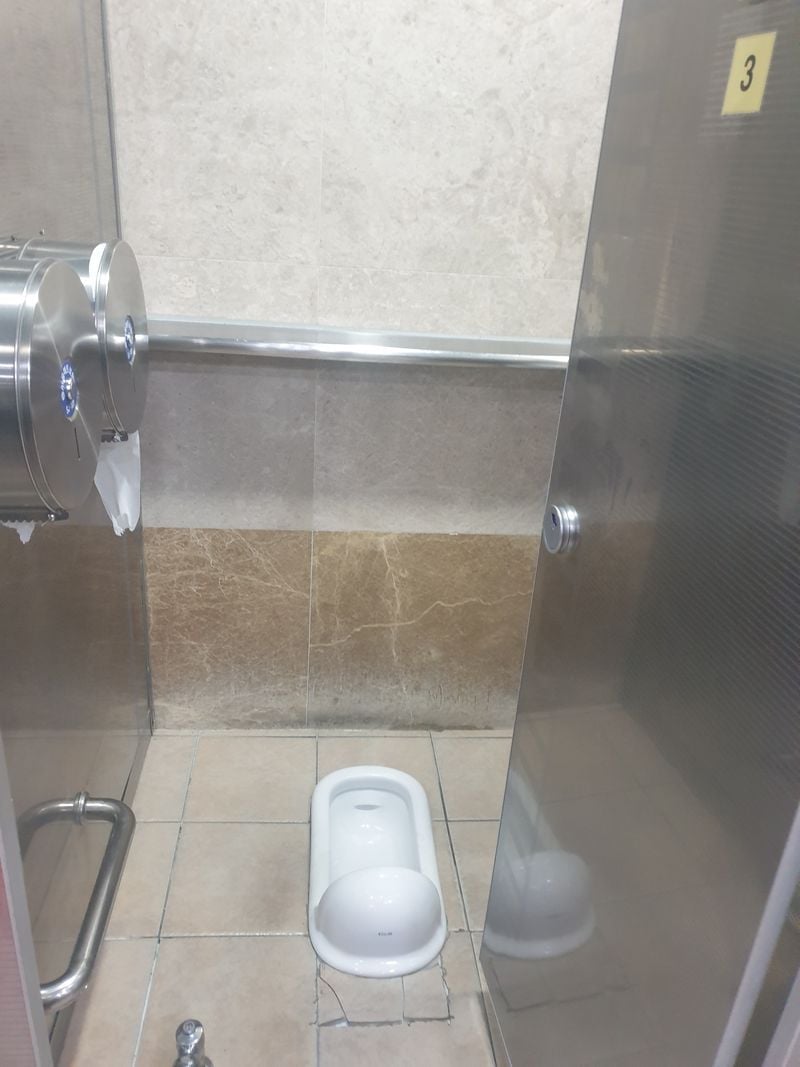 문제는 여자화장실 내부 구조다. 일반 좌식 변기가 아닌 바닥형 재래식 수세식 변기가 전체 칸의 상당 부분, 체감상 절반 가까이를 차지하고 있다. 과거에는 흔히 사용되던 형태지만, 최근에는 이용 방식의 불편함과 위생 문제 등으로 선호도가 크게 낮아진 시설이다.