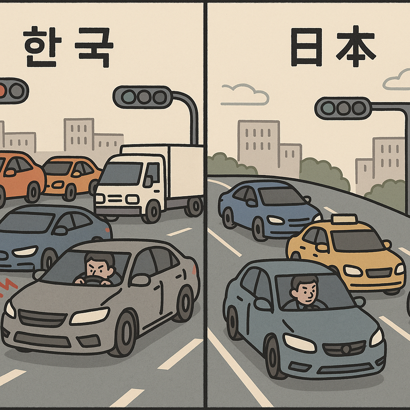 일본은 제한속도 준수율이 높고 신호 체계가 보수적으로 설계돼 ‘느리지만 예측 가능한 흐름’을 중시한다.