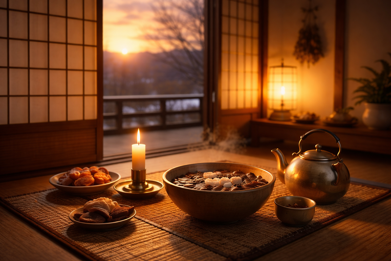 촛불, 단출한 식사, 가족 중심의 시간이 이어진다.