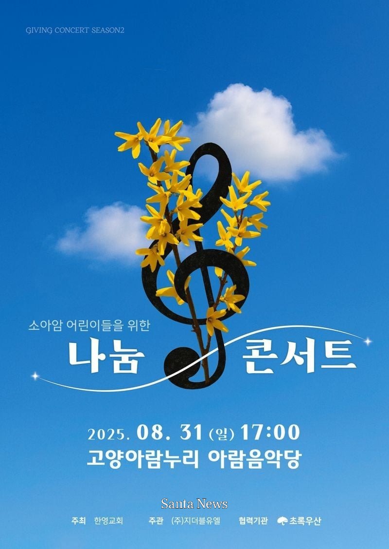 오는 8월 31일(일) 오후 5시, 고양아람누리 아람음악당에서 따뜻한 나눔의 무대가 펼쳐진다. ‘Giving Concert Season 2’라는 이름으로 열리는 이번 ‘나눔 콘서트’는 소아암 어린이들에게 희망과 용기를 전하기 위한 특별한 음악회이다.