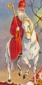 붉은 망토를 걸친 주교 복장에 긴 지팡이를 든 신터클라스가 배에서 내려 선물 보따리와 함께 흰 말로 갈아탄 유화이다. 당시 스페인이 유럽의 부국인 이유였다. 옆에는 ‘블랙 피터(Black Peter, Zwarte Piet)가 선물이 아닌 커다란 자루와 회초리를 가지고 따라 다녔다.블랙피터는 피부가 숯으로 검게 칠해져 있고 말썽꾸러기에는 선물 대신 회초리로 매를 때렸다고 한다.