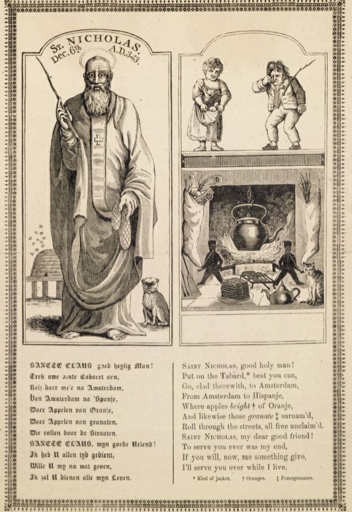 1804년에 뉴욕. 부유 한 상인, 골동품 및 자선 사업가 존 핀타드(John Pintard)에 의해 설립된 뉴욕 역사학회 모임에서 네델란드인들의 12 월 6 일 산타클로스 축제일을 뉴욕의 휴일로 정하고 산타클로스를 뉴욕의 수호성인으로 지정했다.