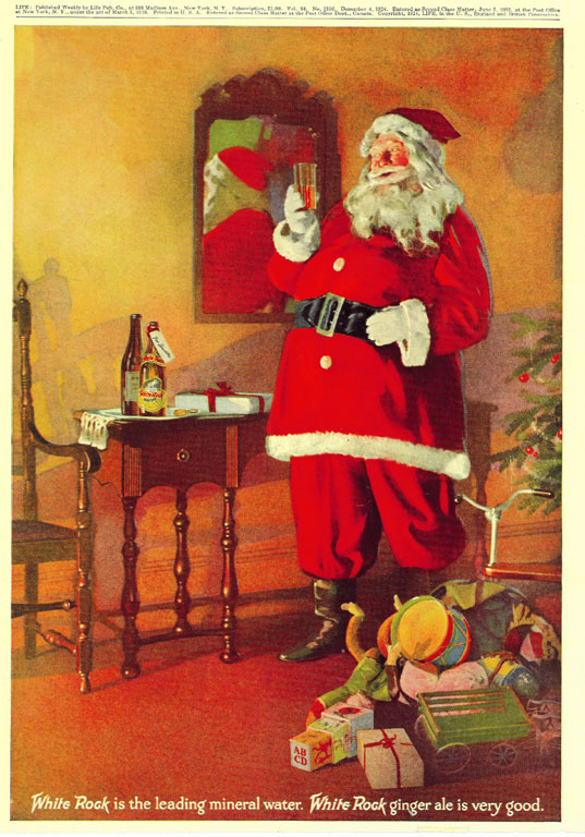 1915년 미국의 화이트 록(White Rock Beverages)이라는 음료회사가 산타클로스를 이용하여 광천수 광고물에 등장시켰지만, 소비자들의 큰 관심을 끌지 못하였습니다.