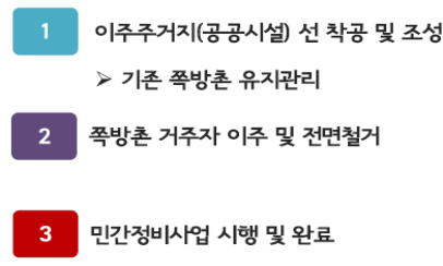 현재 ‘영등포쪽방촌’도 이와 유사한 순환개발 방식으로 정비를 진행 중으로 쪽방 주민들이 타지역이 아닌 현재 거주 지역 내 임대주택이 공급되면 이주할 예정이다. 현재는 LH·SH 등의 사업시행자가 토지 등 보상 절차를 진행하고 있다.