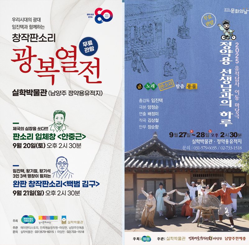 21일(일) 창작판소리 <백범 김구> 공연은 실학박물관 1층 강당에서 공연이 진행됩니다.